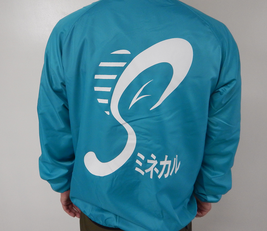 「農力アップ」と「S-ミネカル」のロゴ入りブルゾンが